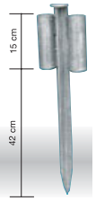 Zemnicí hřebík mobilního oplocení s dvěma objímkami detail >> |