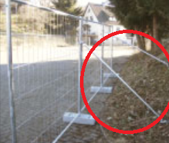 Podpěra mobilního oplocení se hodí především pro mobilní oplocení stojící v těžkém terénu. Díky připevnění na spojovacím díle, který je součástí dodávky, je možná snadná nastavitelnost výšky této podpěry. Výhodou podpěry mobilního oplocení je především její flexibilní použití (viz obrázek). Délka podpěry je 2,00 m. Horní část podpěry se na plot připevňuje spojením mobilního oplocení, které je součástí podpěry.