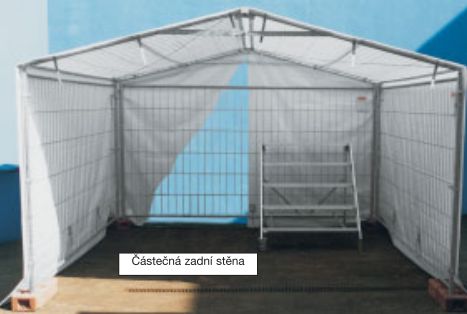 Kompletní zastřešení mobilního oplocení s jednou zavřenou štítovou stěnou chrání personál i stavbu proti povětrnostním vlivům. Díky několika dílům lze mobilní zastřešení stavby vytvořit jednoduchou montáží z dílů mobilního oplocení. Zastřešení z mobilního oplocení je možné prodlužovat o 3,5 m. Sada na prodloužení je dodávána jako komplet i lze objednat jednotlivé díly zvlášť.