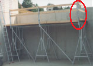 | Ještě větší bezpečnost na lešenových kozách je možné zajistit díky přídavnému rohovému zábradlí. Zábradlí je velmi snadno vsaditelné a ukázku jeho použití lze vidět na obrázku. |